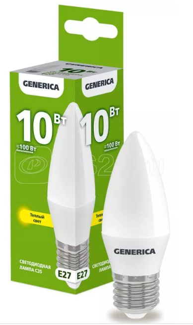 Лампа светодиодная E27 C35 10Вт 3000К "IEK GENERICA"