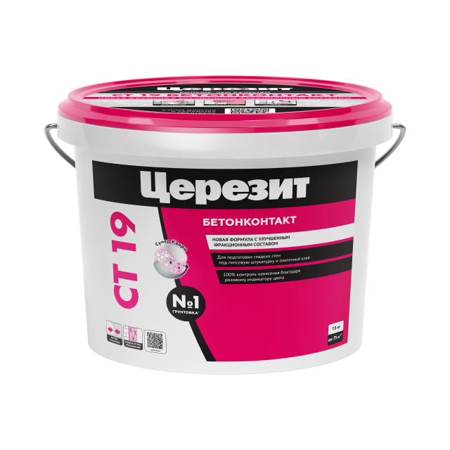 Грунтовка CT 19 Бетонконтакт предназначена для обработки гладких слабо впитывающих оснований стен из монолитного или сборного железобетона перед нанесением плиточных клеев, цементных и гипсовых штукатурок.
